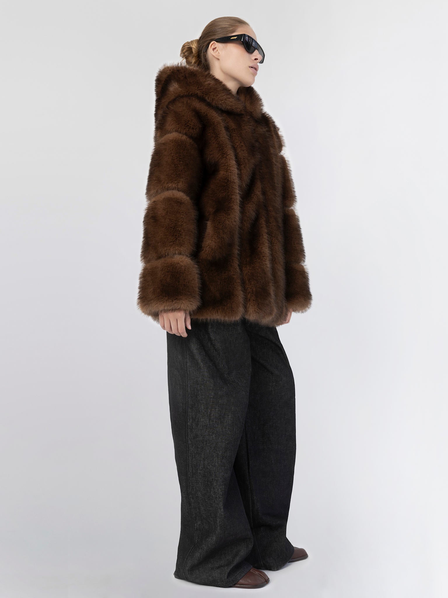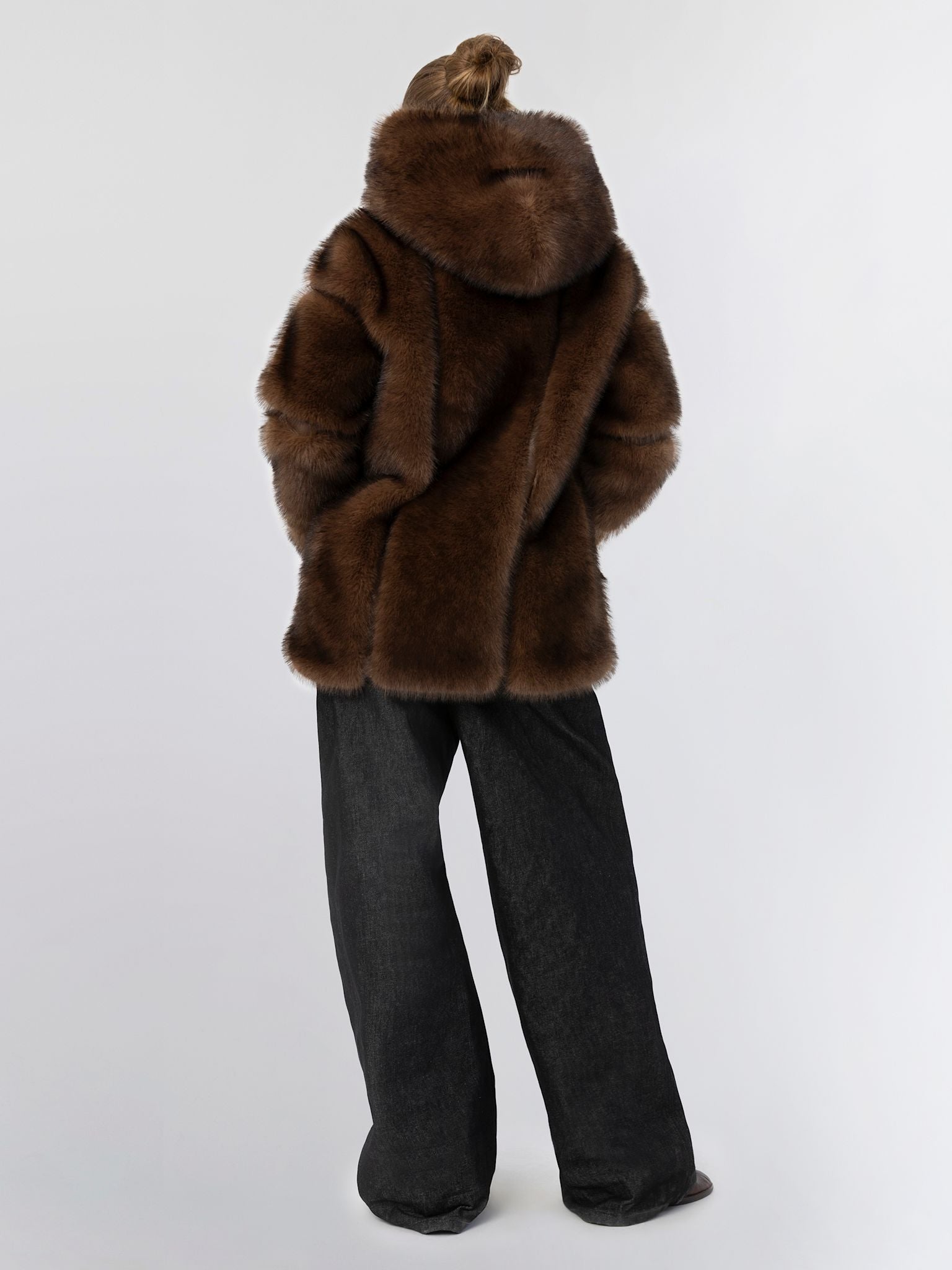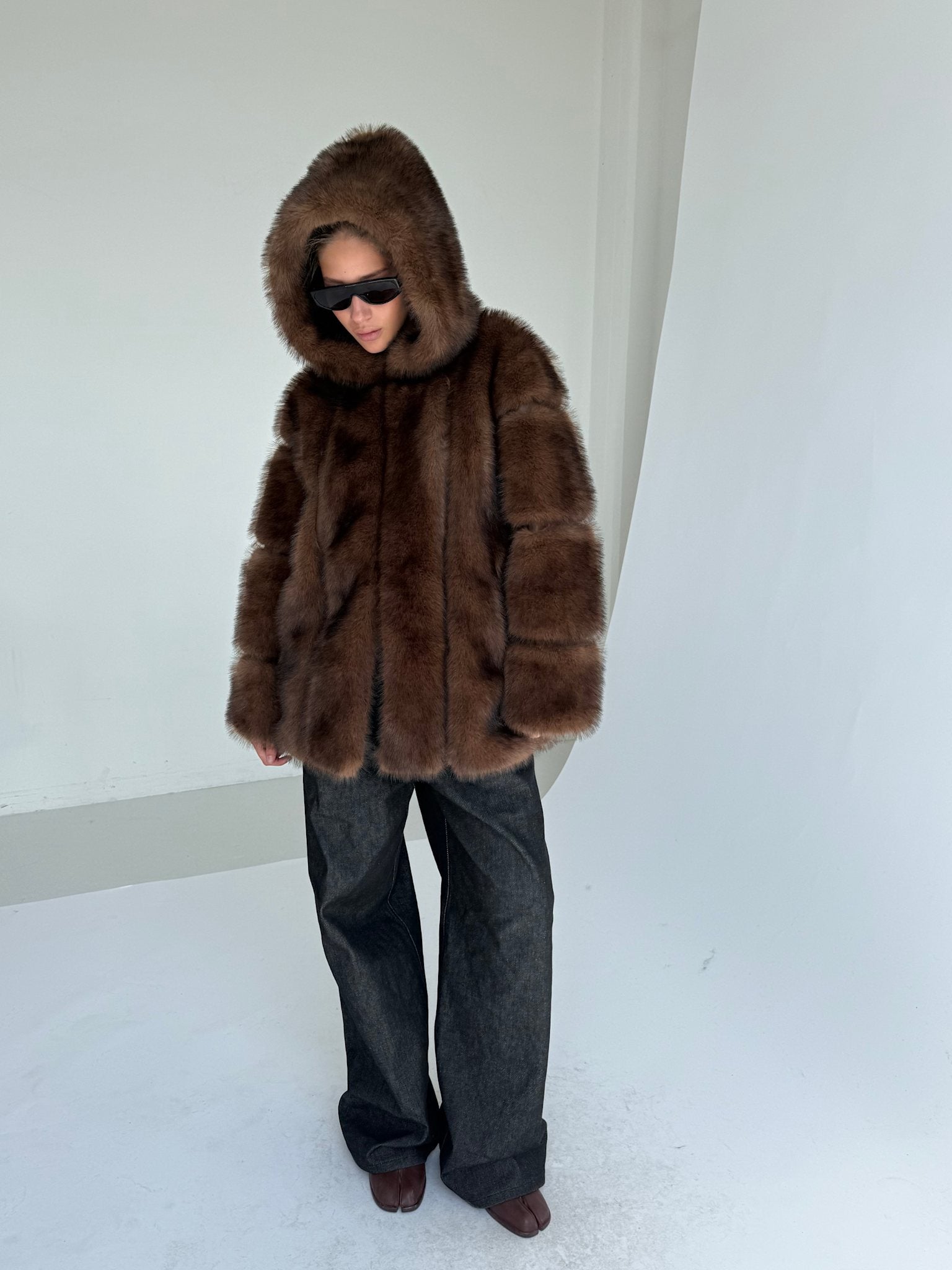 The Casey Faux Fur Jacket is crafted from soft, luxurious faux fur for cozy warmth and a tactile, elegant finish. It features a hood and a seamless hidden closure, offering a sleek, minimalist look. Designed with a relaxed, oversized fit, the jacket falls just above mid-thigh, combining comfort with effortless style.