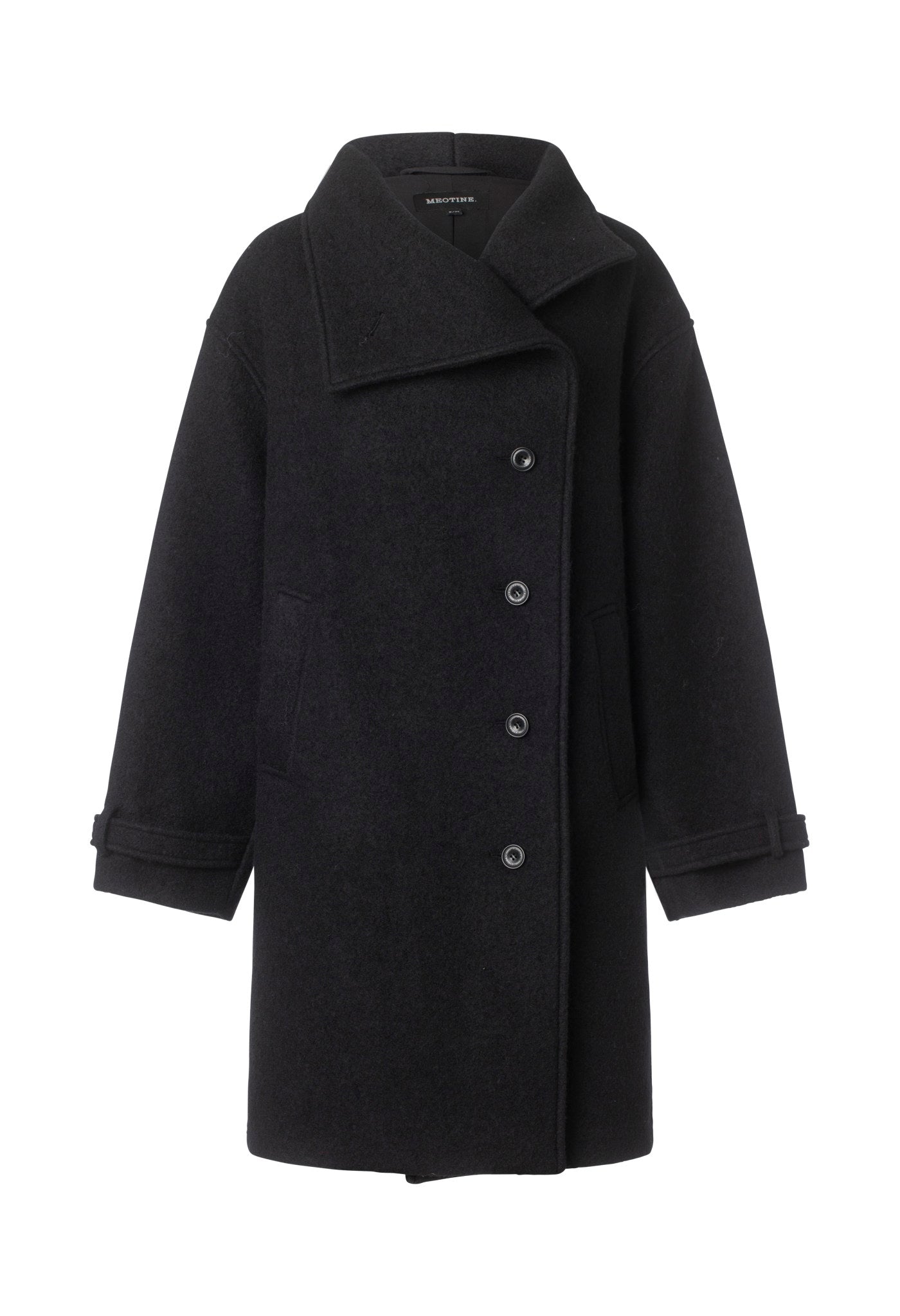 Nola is a mid-length coat in a thick wool material. The coat has an oversized fit and is designed with an asymmetrical button closure, two hidden front pockets and detailing on the cuffs.