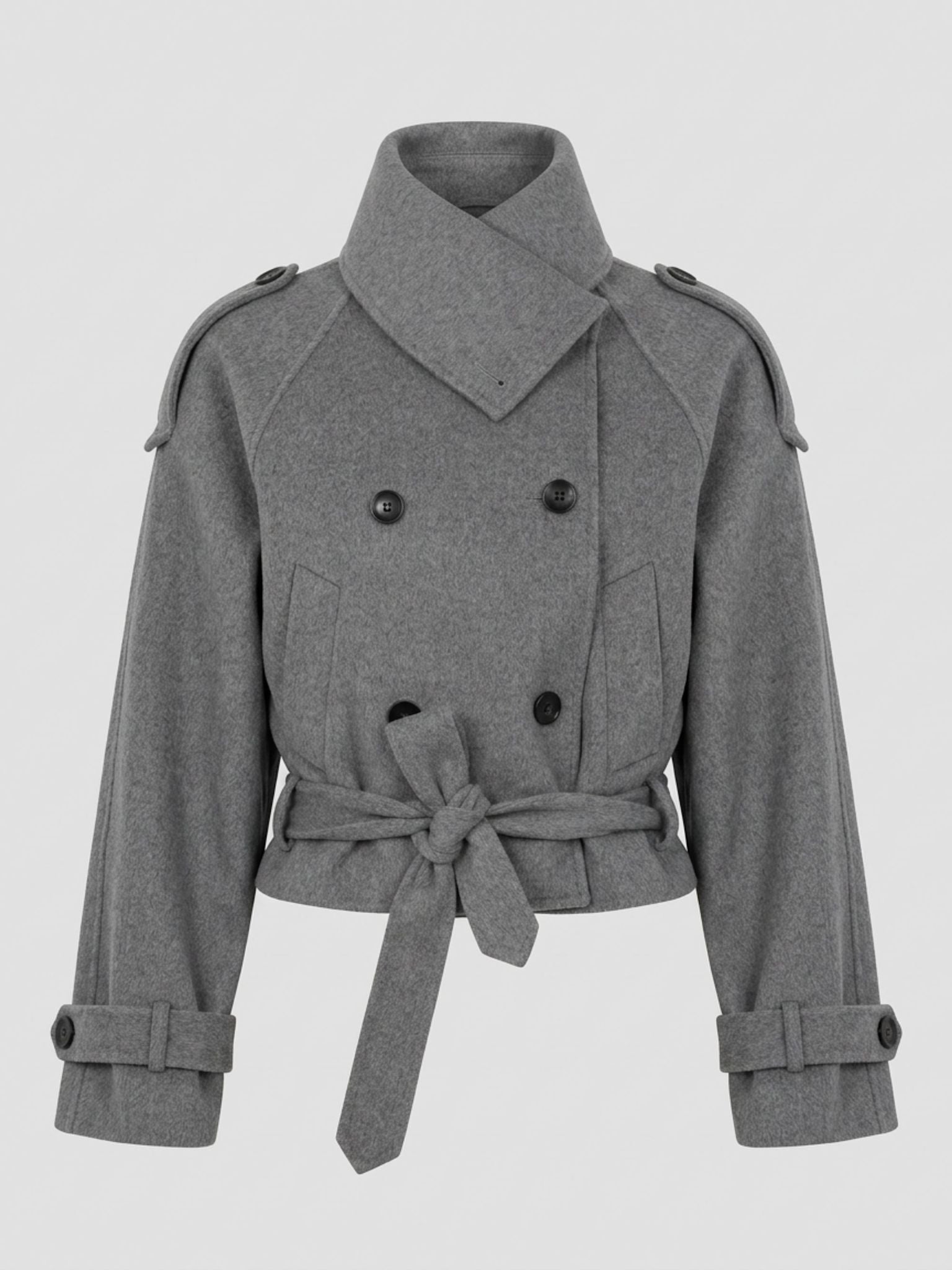 The Bello Trench Jacket comes in a soft double-faced wool, offering a cozy yet structured feel. It features a double-breasted front, detailed shoulder and cuff buttons, and practical front pockets. Designed with an oversized silhouette, it includes a matching belt to define the lower waist, allowing for a polished, tailored look or relaxed styling. We recommend choosing your regular size or sizing down for a more classic fit. The model is 175 cm tall and wears size Small.