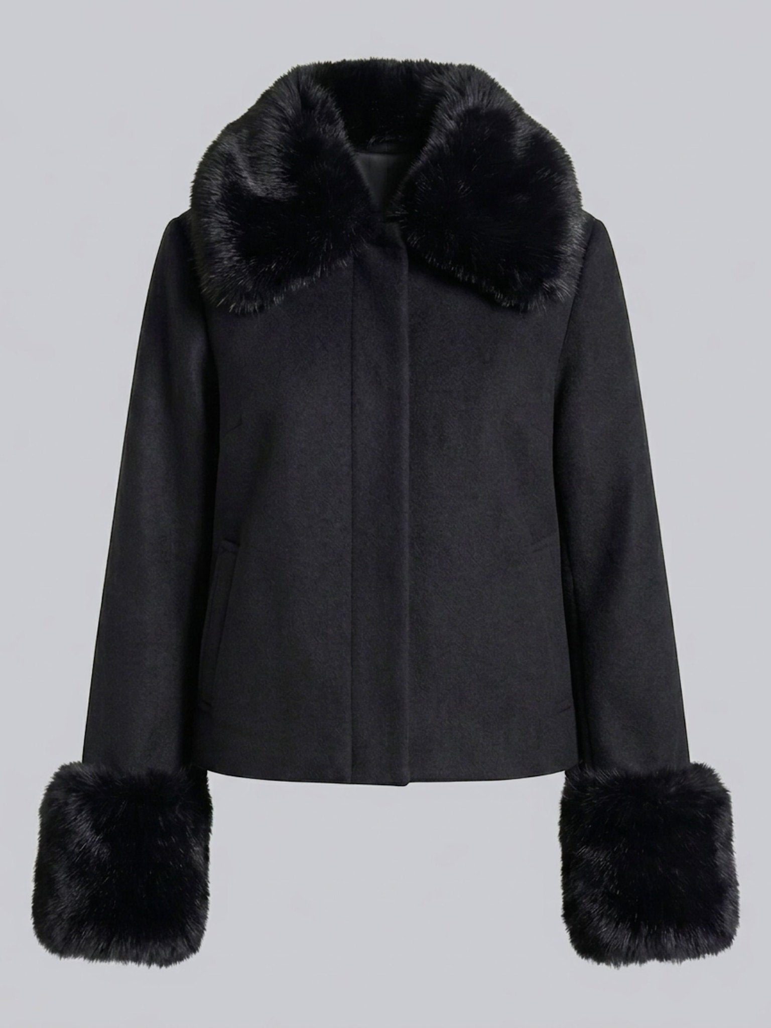 • Faux fur collar and cuffs.