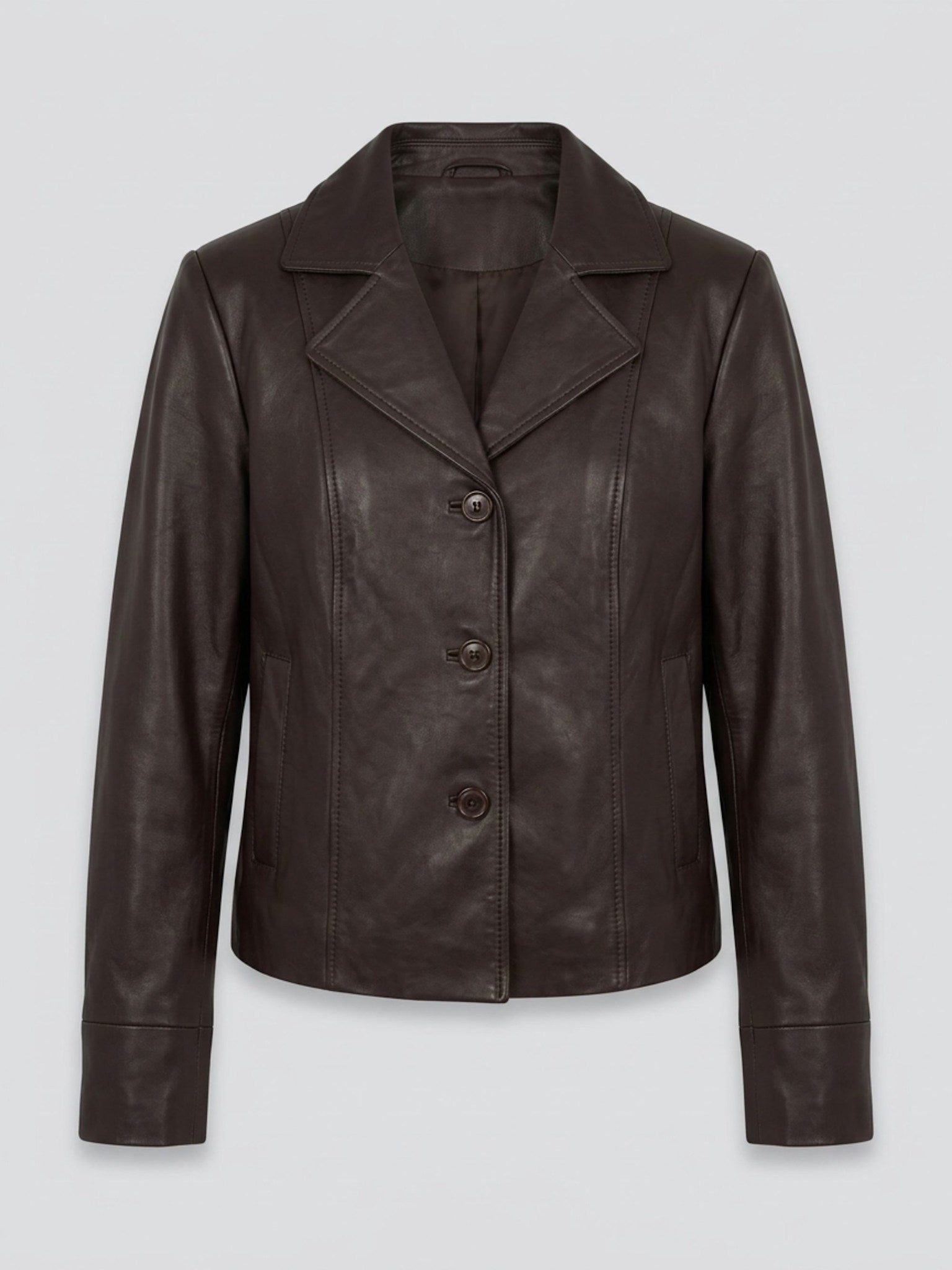 Turn heads with every step in a jacket that demands attention. Drew Jacket is crafted in fully lined, 100% soft leather making it the perfect style for transitional seasons. It features a single-breasted button closure, lapel collar, two welt pockets and beautiful, all-around stitching. Drew Jacket is a tailored jacket that fits true to size for a sleek, polished look. For an oversized look we recommend sizing up.